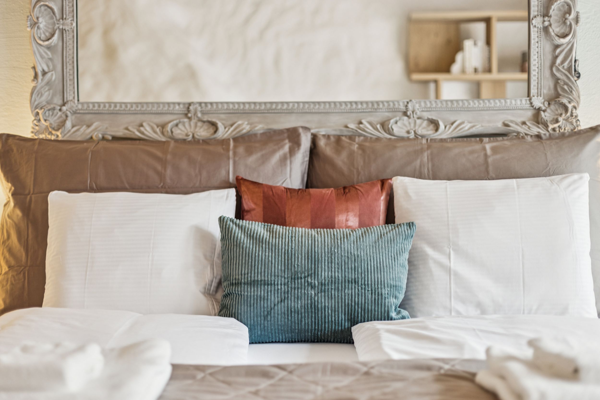The master bedroom features a luxurious king-size box-spring bed designed for exceptional comfort. From here, you can step directly onto your private balcony — the perfect place to enjoy morning coffee, fresh air, or a quiet moment overlooking the charming Old Town surroundings.