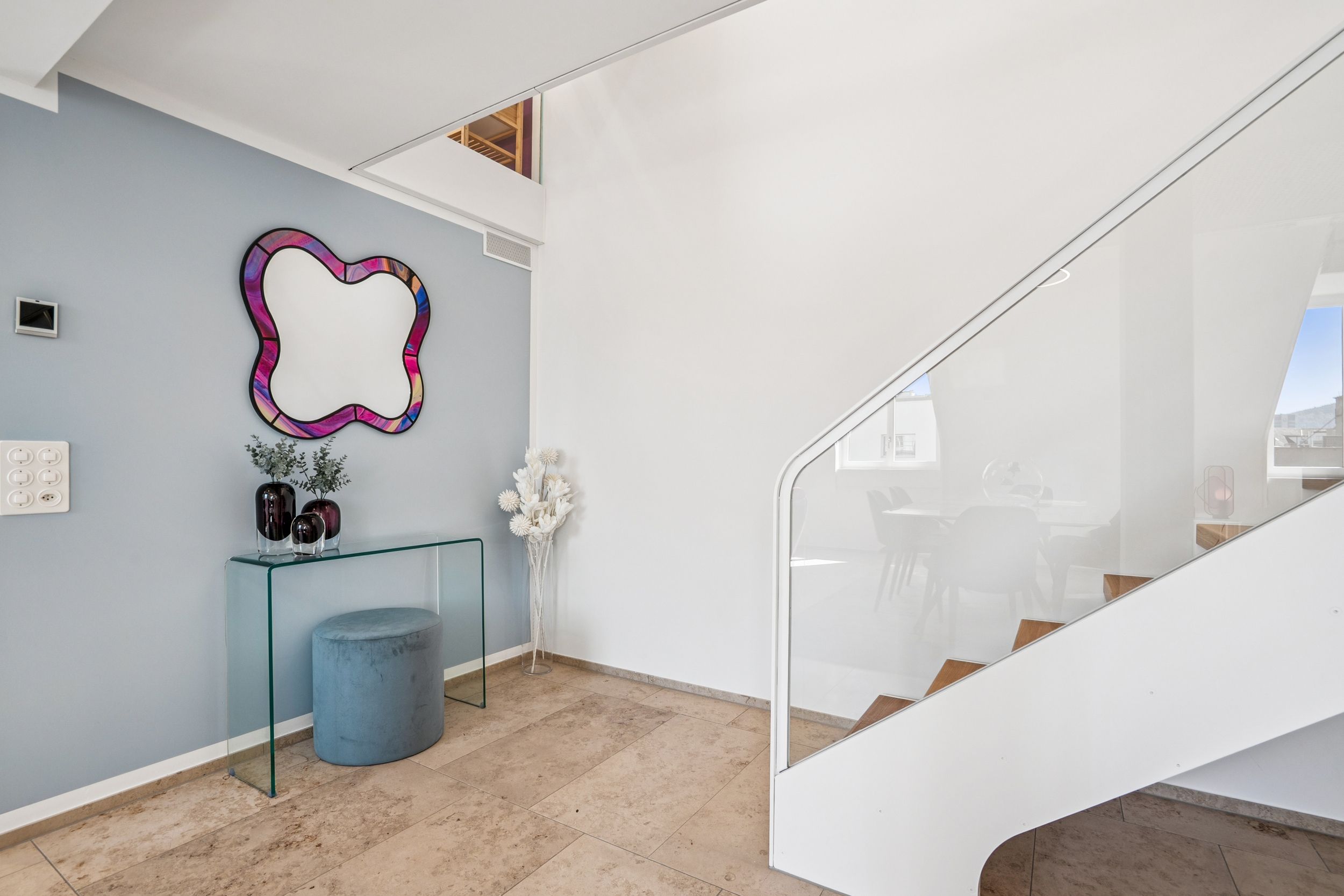 Set within a beautifully renovated historic building, the apartment combines timeless architecture with modern luxury. As you arrive on the top floor, the penthouse opens into bright, elegant interiors where designer furnishings, warm materials, and refined details create a space that feels both sophisticated and inviting.